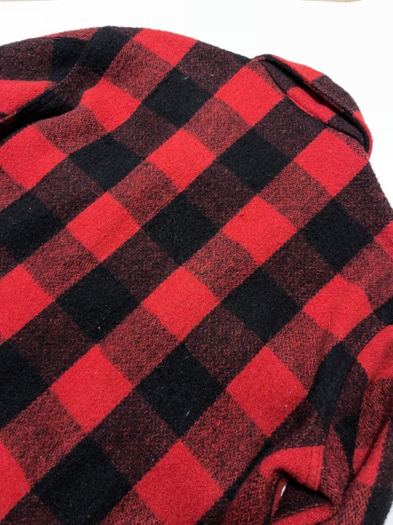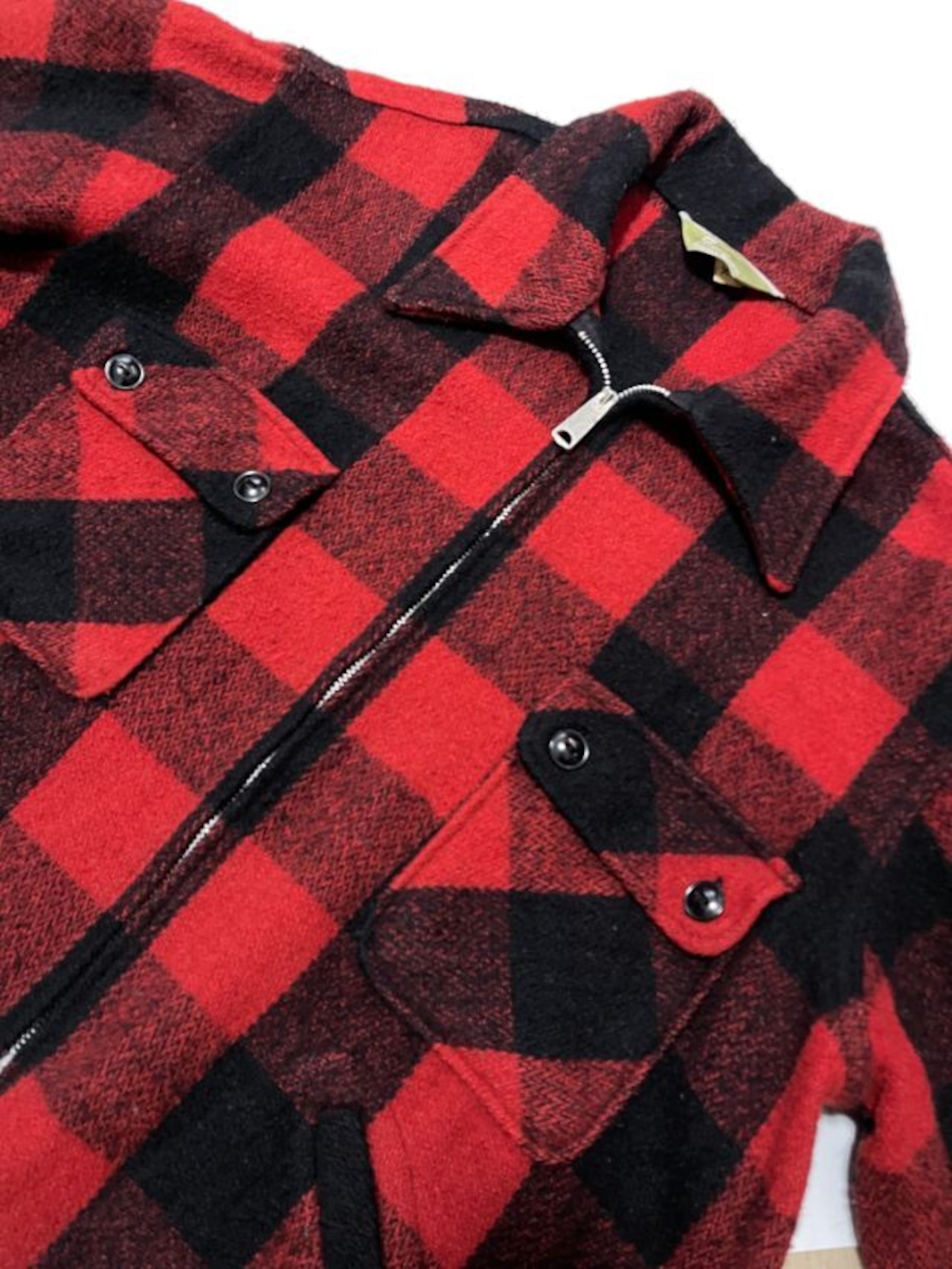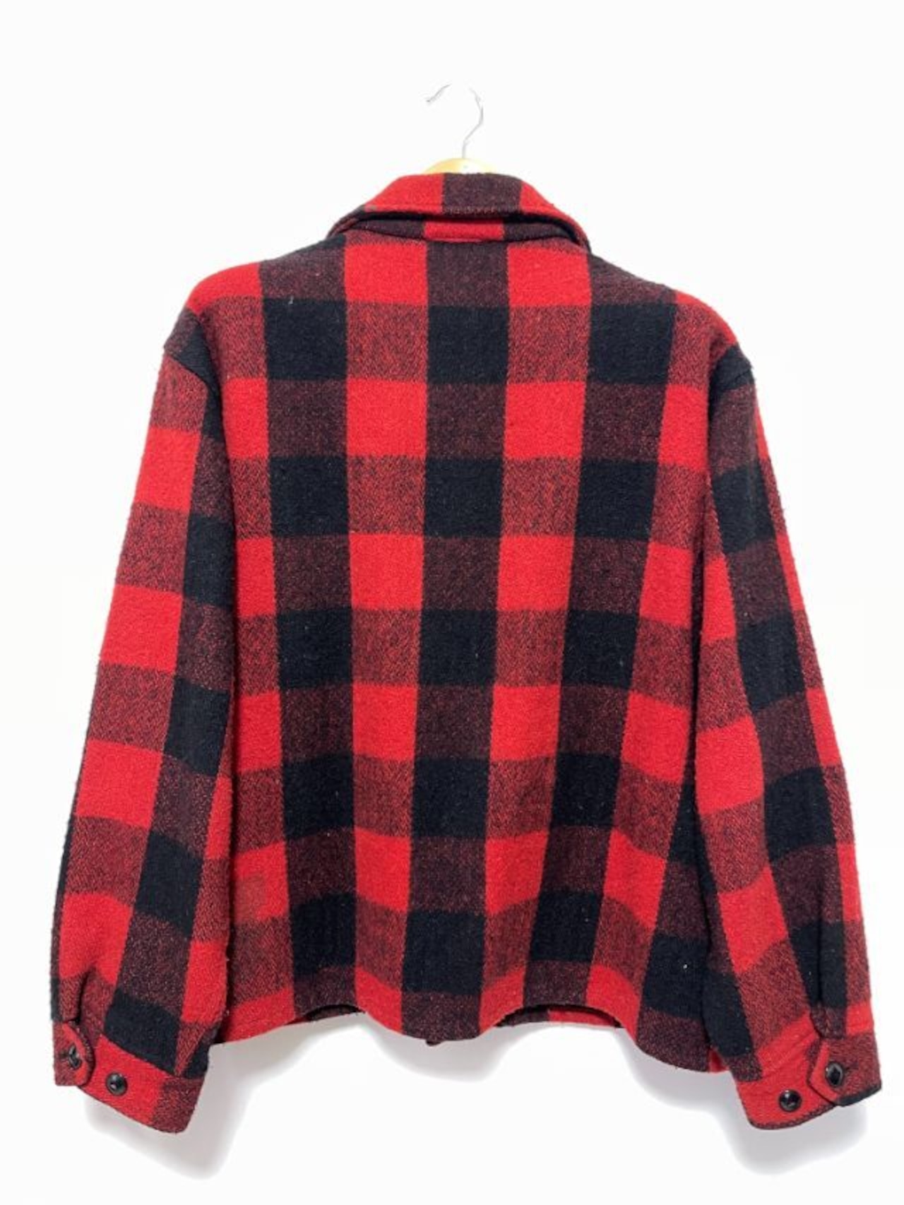 クラシックな赤×黒のバッファローチェック柄が特徴的な、JCPenney製ウールジャケット。ハンティングウェアとして人気の高いデザインで、肉厚なウール素材を使用し、寒冷地でもしっかりと暖かさを確保できます。
