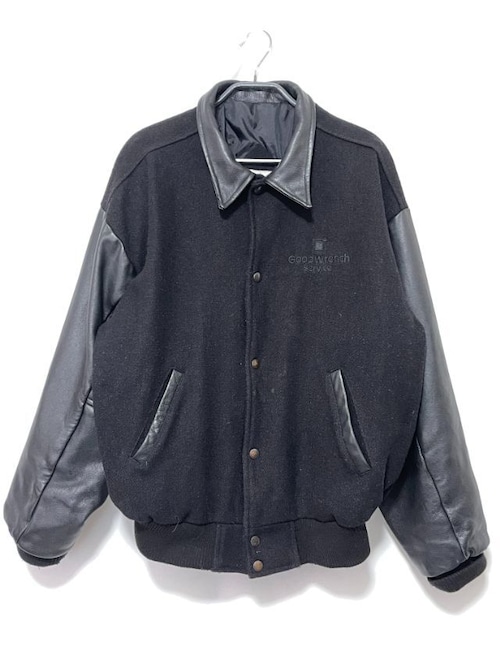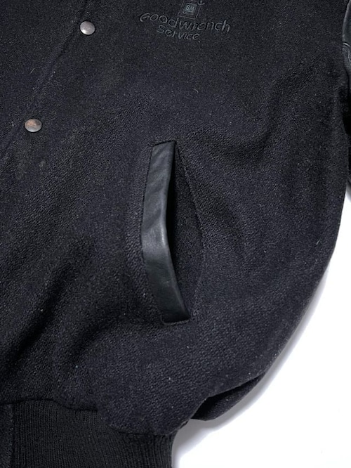 オールブラックの無骨なデザインが魅力のGoodwrench Service刺繍入りメルトンスタジャン。